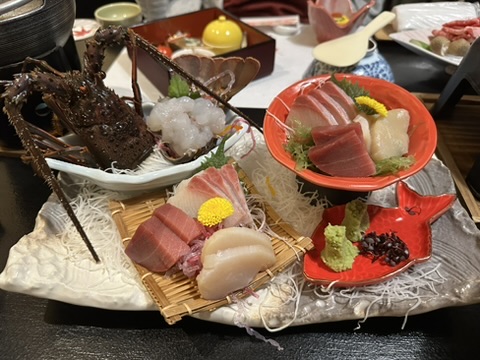 ご夕飯は、まあまあという感じでした。いわゆる旅館料理といった感じでしたが、伊勢海老の刺し身はとても美味しかったです。釜飯は美味しかったですが、ちょっと一人あたりの量が多かったかな。これだと他の料理が食べ切れなくなると思いました。