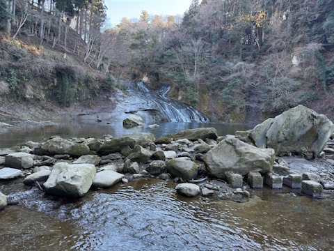 到着してから、滝見苑のすぐ近くにある「粟又の滝」を見に行きました。道路から渓谷を下ったところにあり、すぐにたどり着けました。サラサラと流れる滝を見て、とても爽やかで清々しい気分になりました。マイナスイオンというものが存在するなら、たくさんあったと思います。先日は東京に雪が降ったので少々心配していましたが、雪はまったくなく歩道を歩くことは問題なかったです。個人的に、山間の渓谷を散策したことなんてなかったので、とても新鮮に感じました。結構な急斜面なので戻るときは結構キツかったです。