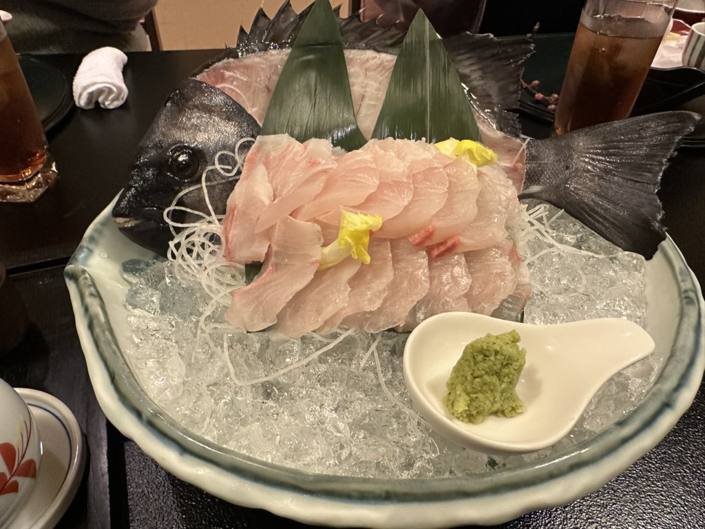 夕飯はいつも通りの安定したご馳走でした。今回の女将からの特別な魚は石鯛で、身がしまっていて濃厚な旨味が堪能できました。アワビの踊焼きも定番ですがこれまた美味しかったです。そして、今回感動したのが最後に出されたデザート。甘夏をゼリー状にしたもので、甘夏の風味がしっかりと残りつつ、甘みが抑えられ苦みがほどよくあったので、お腹いっぱいの食後でもすんなりといただけました。